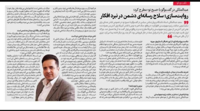 - جحا 📌 سعید عبدالملکی در گفتوگو با «صبح نو» مطرح کرد؛ روایتسازی؛ سلاح رسانهای دشمن در نبرد افکار
