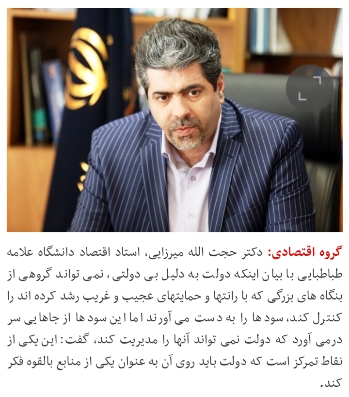 ️♦️گروه اقتصادی: دکتر حجت الله میرزایی، استاد اقتصاد دانشگاه علامه طباطبایی: دولت به دلیل بی دولتی، نمی تواند گروهی از بنگاه های بزرگی که با رانتها و حمایتهای عجیب و غریب رشد …